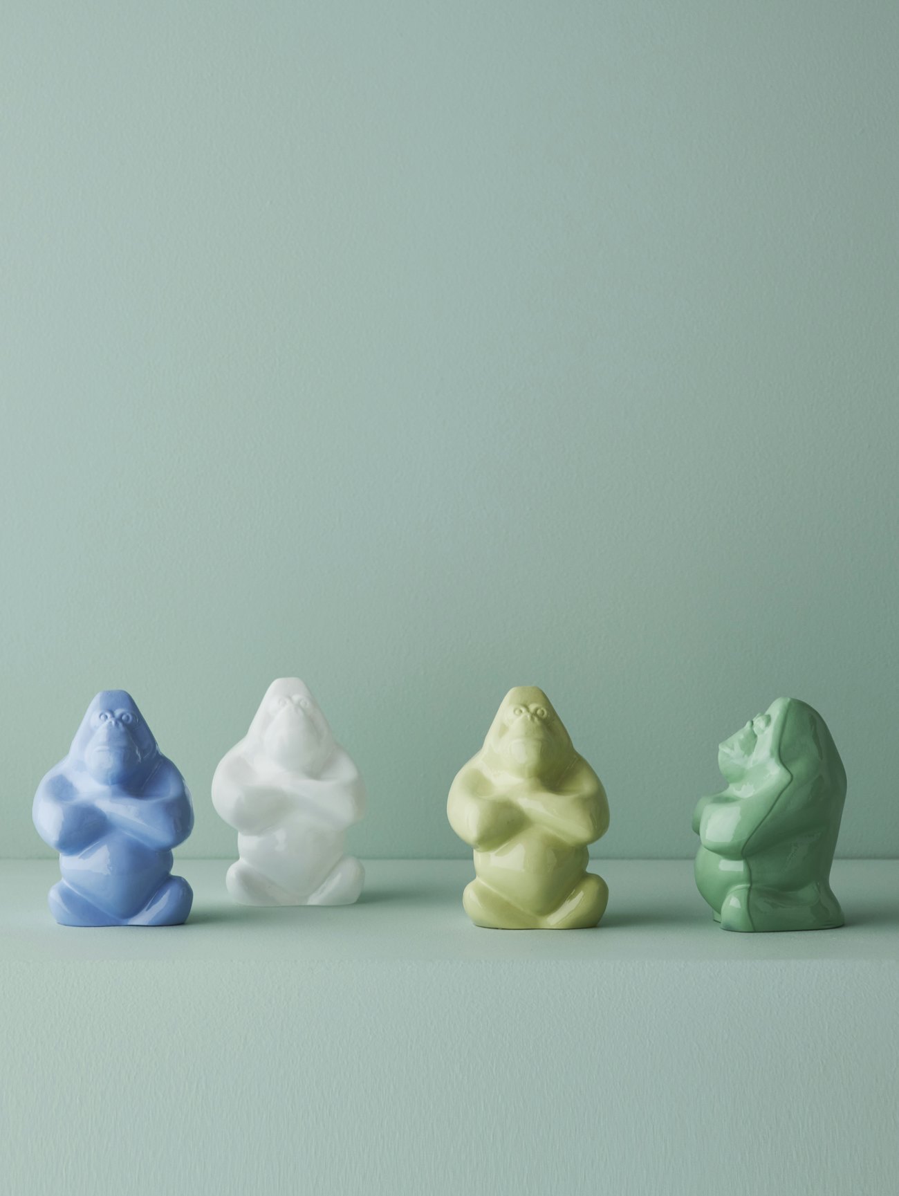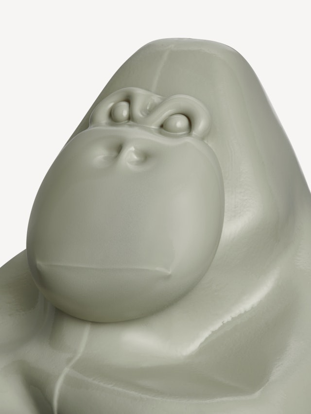The gorilla invites each viewer to make their own interpretation of its mystifying exterior. That it demands attention is nevertheless indisputable. The glass sculpture Gabba Gabba Hey, here in a smaller version, is handmade in Kosta and its opaque black surface is beautifully reflective. Design by Ludvig Löfgren.