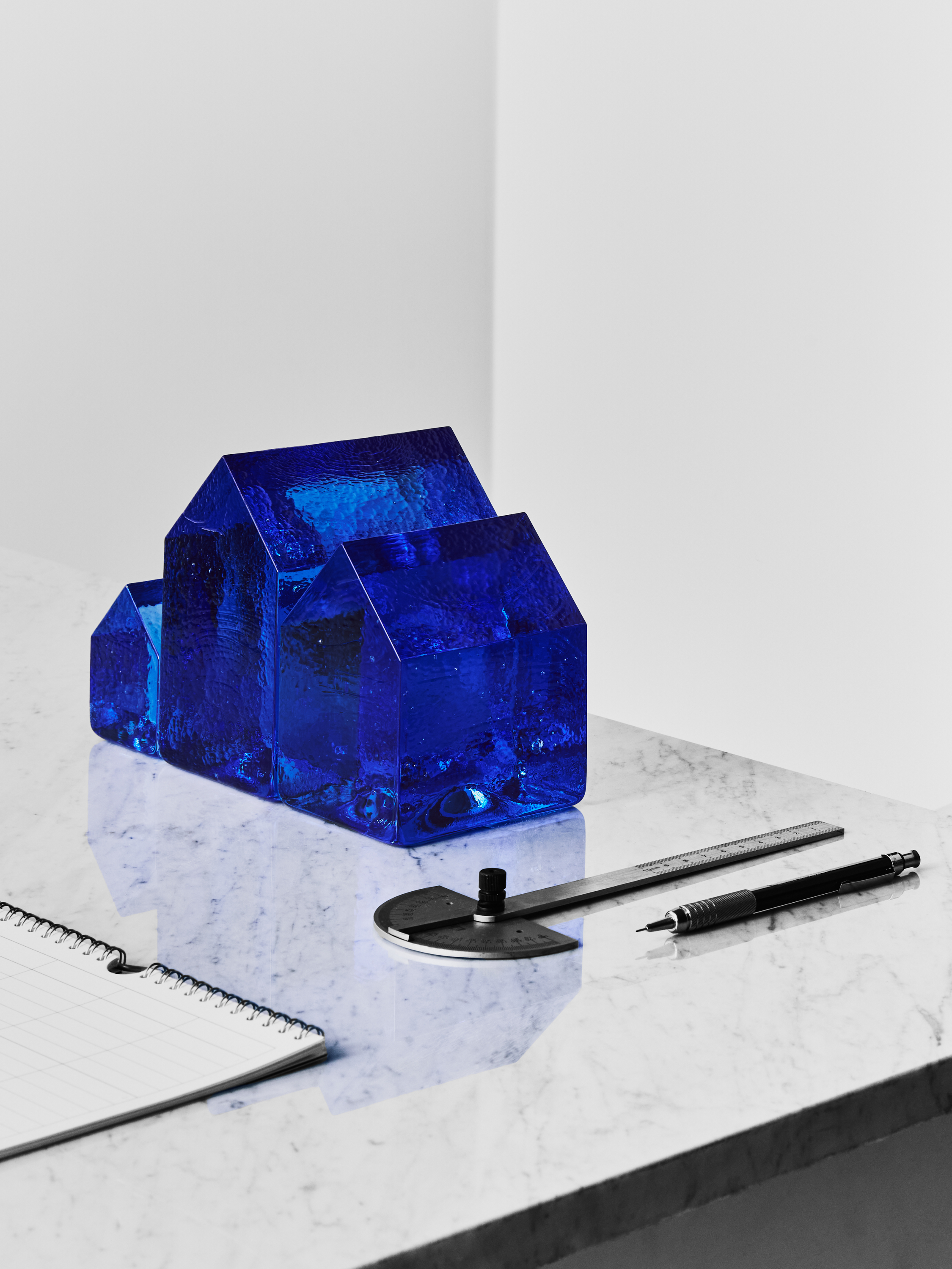 The simplistic building shape used in the Kosta House is a recurring theme in art-glass and design legend Bertil Vallien’s work. These glass houses by Kosta Boda are made in cast clear or colored glass at Kosta Glassworks in Sweden and come in multiple sizes, forming a decorative display for your home, a functional bookend or a valuable gift to family, friends or colleagues.