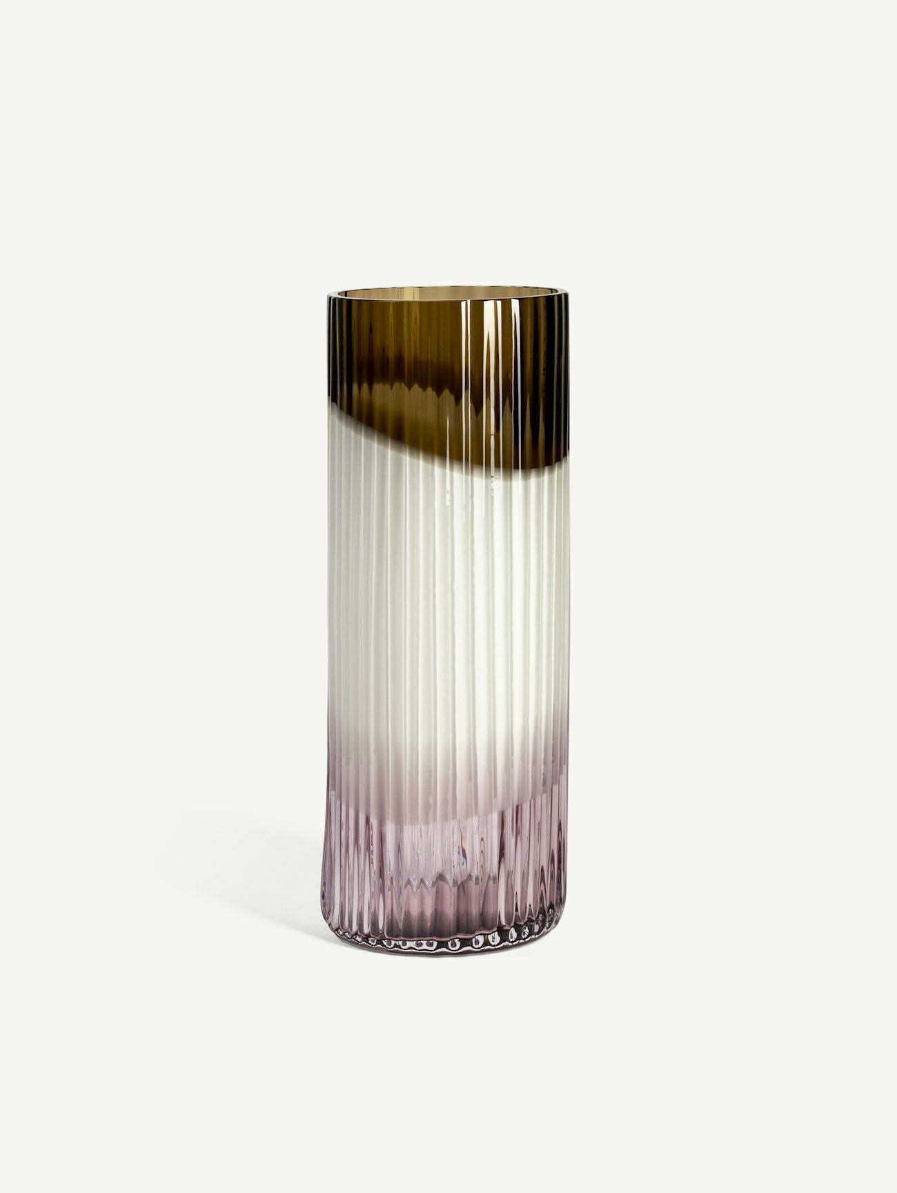 Lena Bergström's internationally acclaimed Plissé (Pleated) was shown for the first time in the tribute exhibition Lena 25+ at Kosta Boda Art Gallery 2021–2022. The series is mouth-blown at Kosta Glassworks. Plissé cylinder vase brown/white/pink is made in an edition of 10, numbered and signed by the designer.