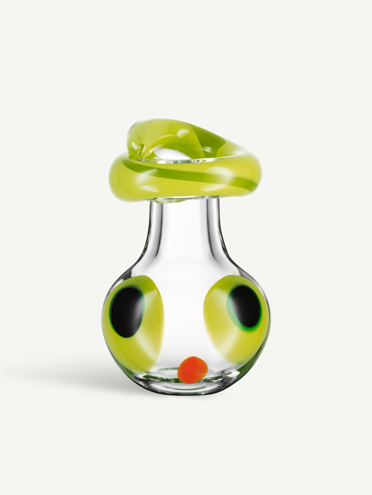 With What’s Up?/Nothing Much, Frida Fjellman has developed her Erik-Höglund-inspired glass sculptures with the same individual style. Fjellman has chosen to emphasize the properties that appeal to her – shimmering, flowing, fascinating and playful. This limited edition object from Kosta Boda Artist Collection is mouth-blown in Kosta, with hand-made ears that are added on afterward.